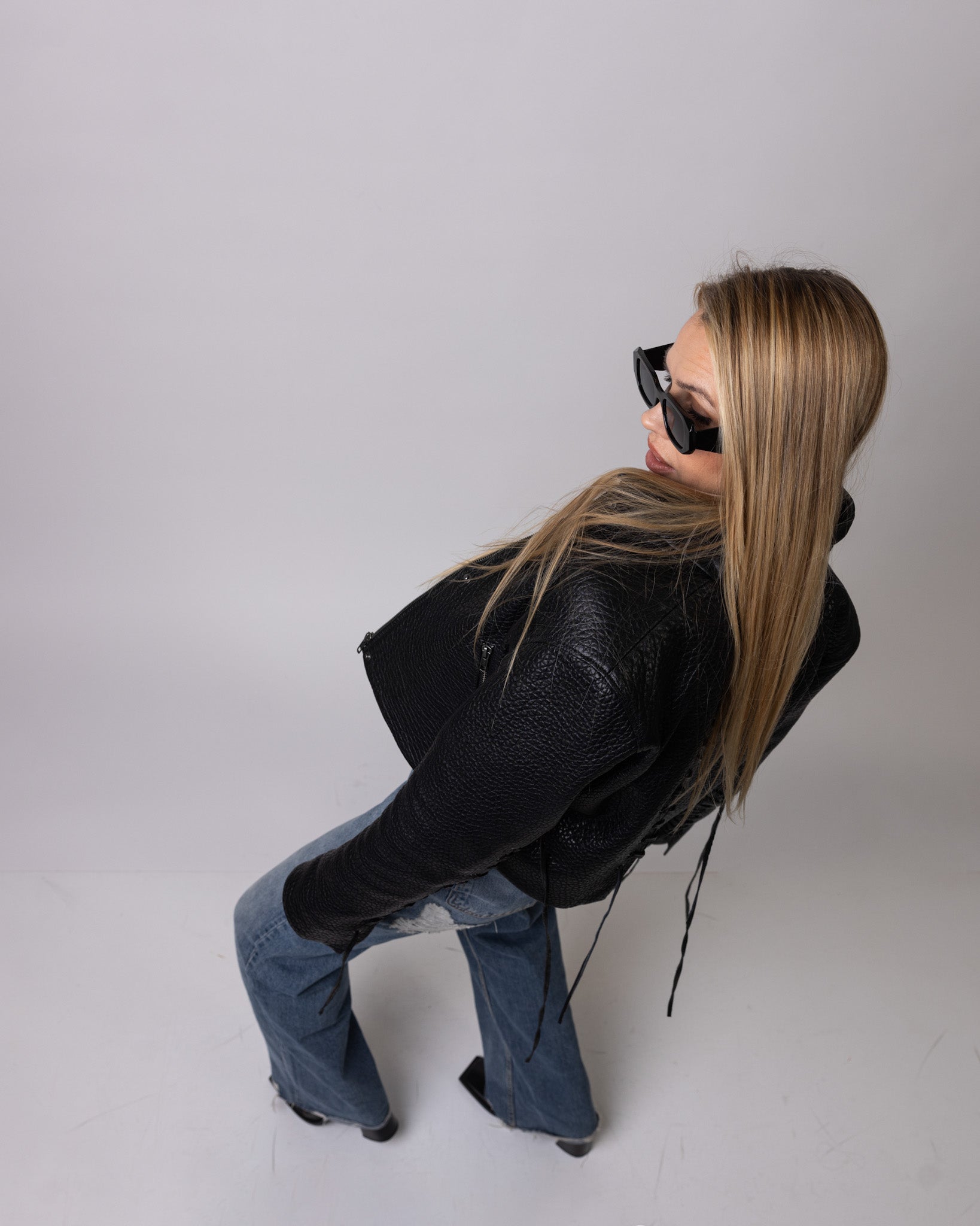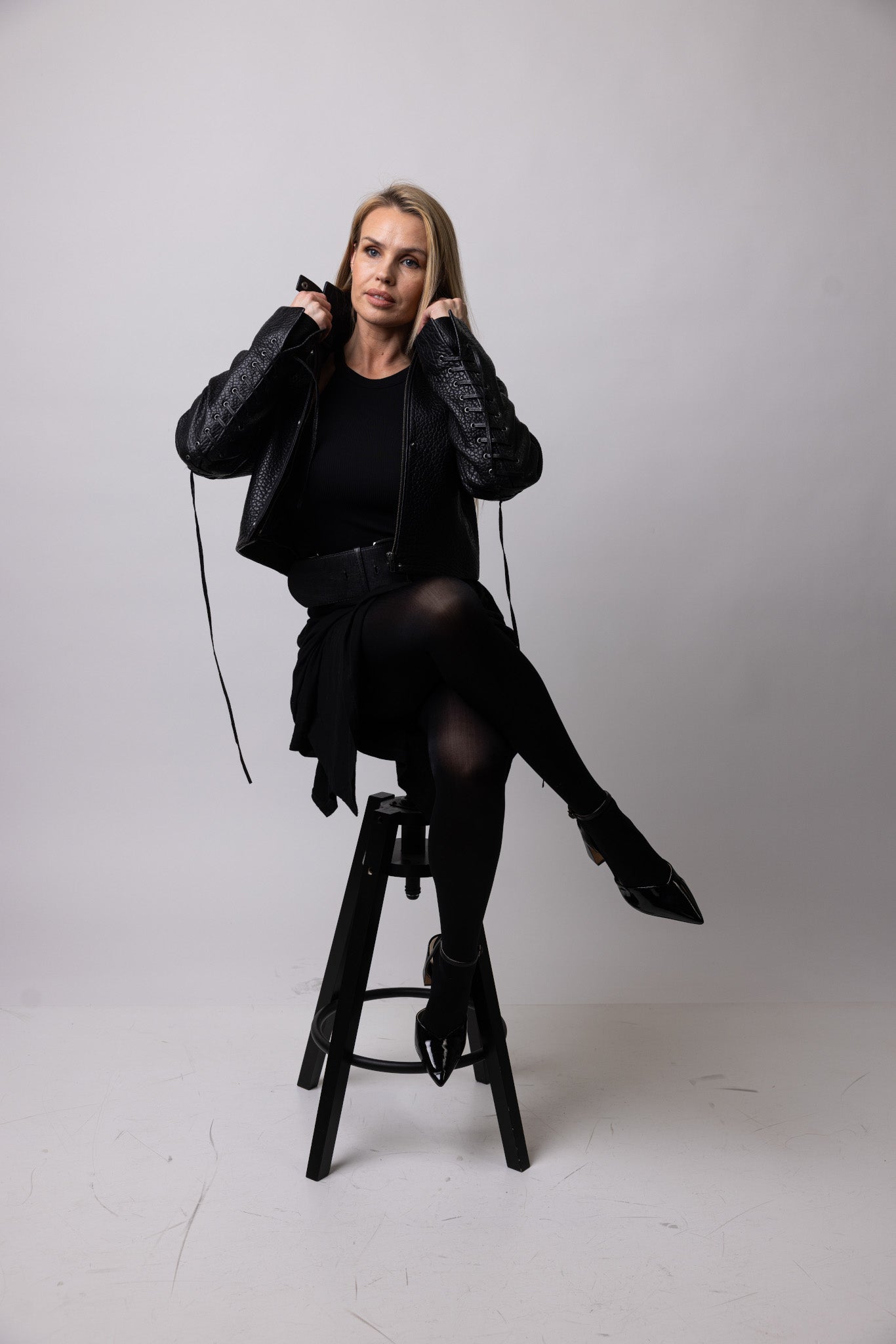 Bubble svarti leðurjakkinn okkar er vandlega hannaður úr 100% ekta lambaskinni og lúxus silkifóðri og geislar af fágun og þægindum. Þessi jakki er hannaður á Íslandi og hentar fullkomlega fyrir öll tilefni.